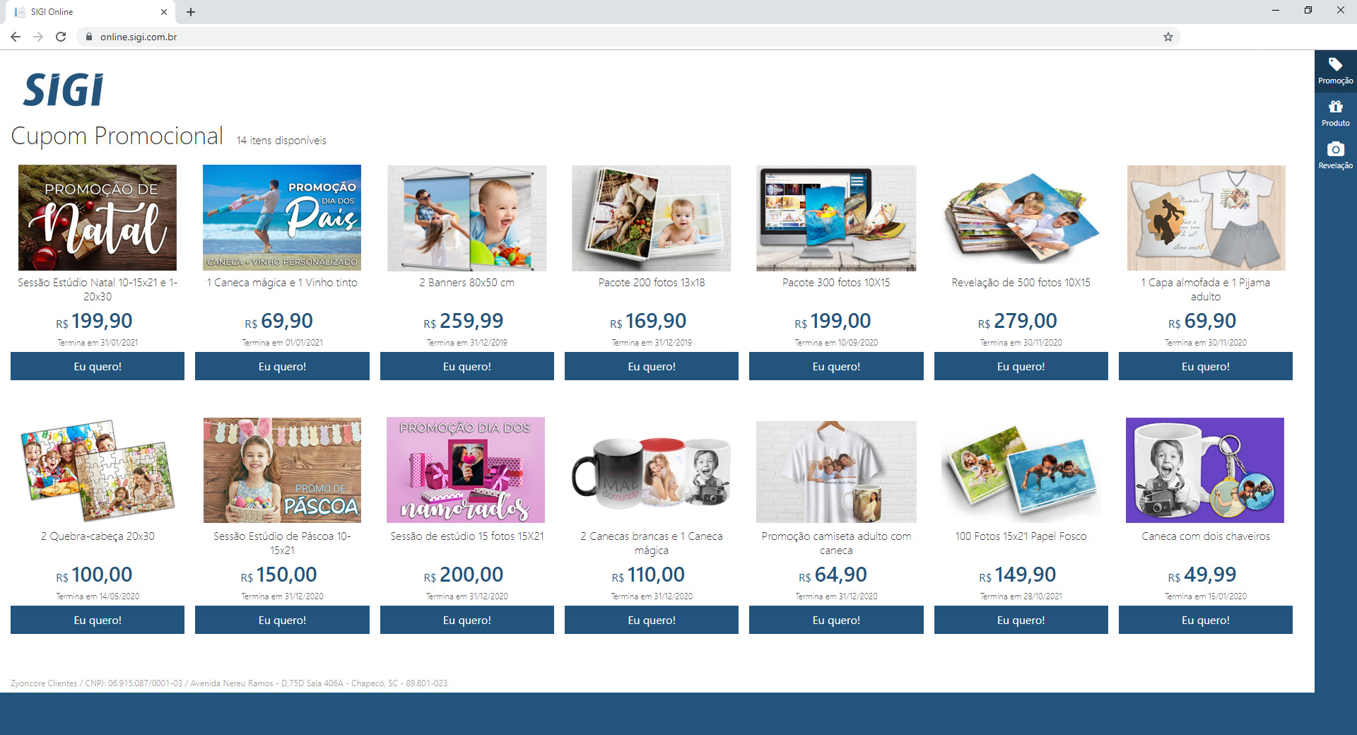 O sistema SIGI ON-LINE é um software para o envio de imagens digitais pelo site para revelação / Impressão.